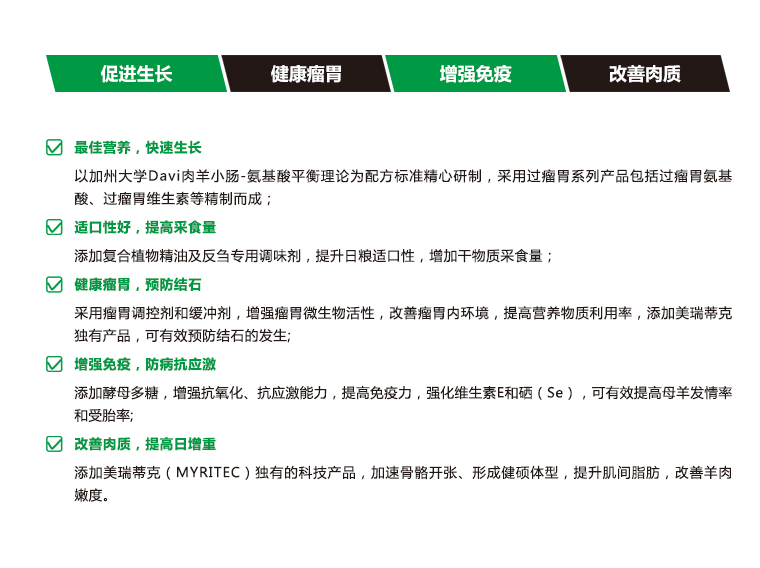 核心功效:促进生长 健康瘤胃 增强免疫 改善肉质