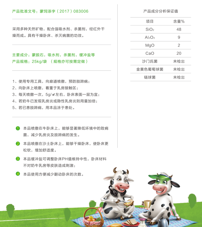 核心功效:干燥牛床 抑制细菌
